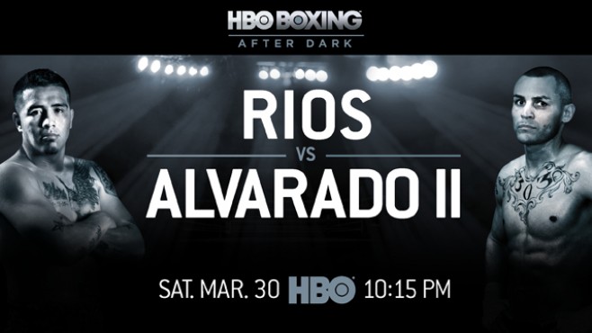 Round 1 Both fighters met in the center of the ring Rios started to throw some jabs Alvarado uses lateral movement, Rios landed a hard left jab, another combination by Rios, Alvarado responded with jabs, Hard right hand by Rios, Alvarado holds on, Rios landed to the head and body, Another left right combination by Rios, Another hard right landed for Rios with less than 30 seconds remaining in the round, Hard punch combination by Rios, its all Brandon Rios in this round. Alvarado bleeding from the really took a beating especially in the last minute of the round