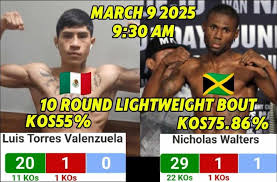 637 ViewsNicholas Walters vs Luis Torres Valenzuela at the Thunder Studios, Long Beach Once Beaten Nicholas Walters takes on Young Mexican Boxer Luis Torres Valenzuela in a 10 round bout.